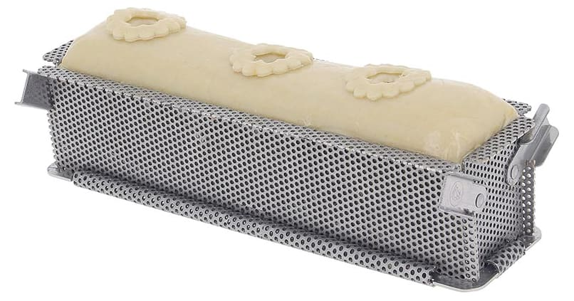 Les perforations précises de la technologie AIR‑SYSTEM assurent une circulation optimale de l’air chaud : la garniture reste moelleuse, la pâte respire et la cuisson est homogène du centre jusqu’aux extrémités. Ce moule rectangulaire est idéal pour la confection de pâtés en croûte, mais aussi pour le pain de mie, les cakes salés, les cakes sucrés ou le pain d’épices.